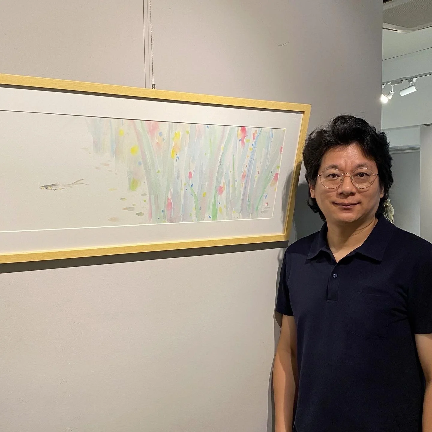Liu Xuan Qi with his piece titled “游心" (SOLD)